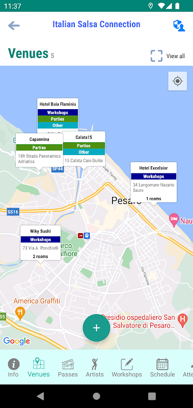 -Organize workshops, parties and other activities and share them with attendees