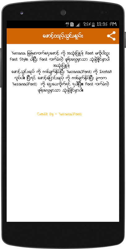 Yuzana ျမန္မာလက္ေရးေဖာင့္ ကို အသံုးျပဳရန္ Root မလိုပါဘူး