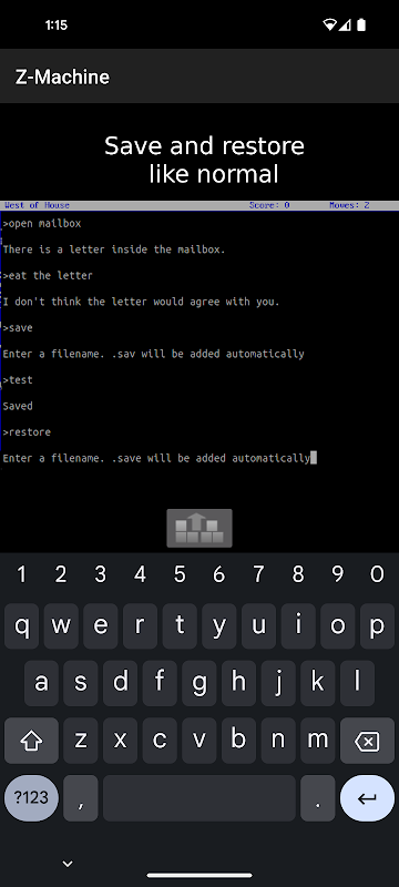Z-Machine - makes playing classic Zork interactive fiction and graphical games possible and easy on Android devices.