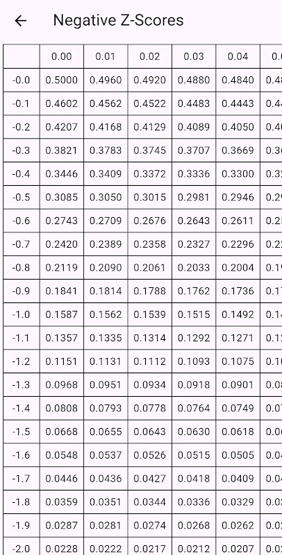 Why Choose Z-Table? Z-Table is optimized for speed and ease of use. Whether you are working on statistical analysis, preparing for exams, or just need a quick reference, Z-Table is the perfect companion. No ads, no distractions—just reliable and accurate statistical data at your fingertips.