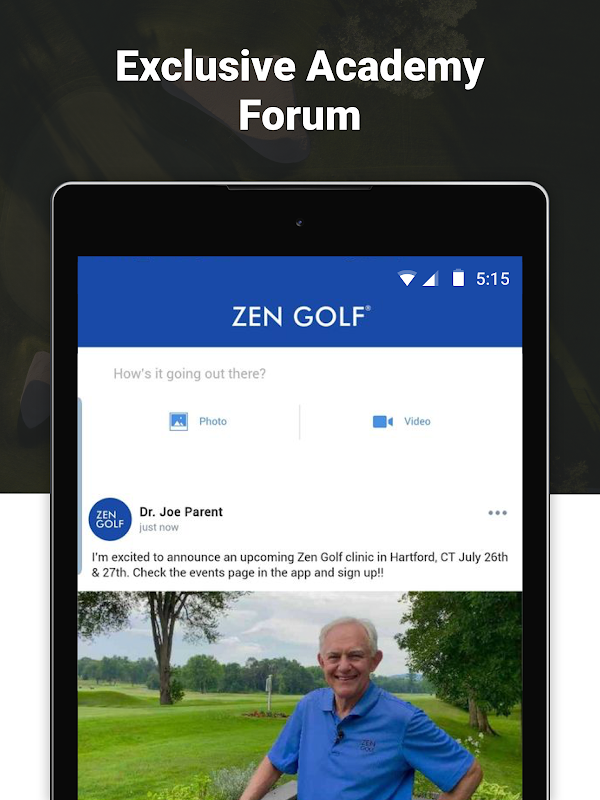 • Academy Forum: social feed where instructors share VIP content, and students share photos and videos about their golf games, training and progress with the entire online academy