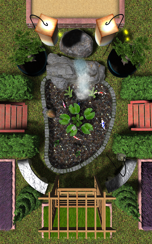 Features koi fish, butterflies, fireflies, birds, turtles, frogs, and much more. The ambience is immersive and relaxing.