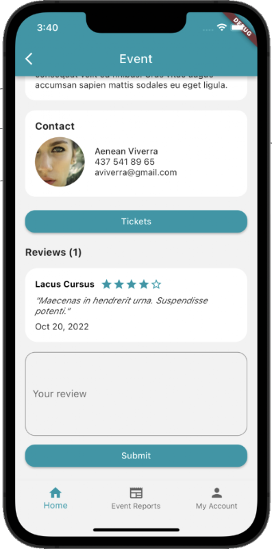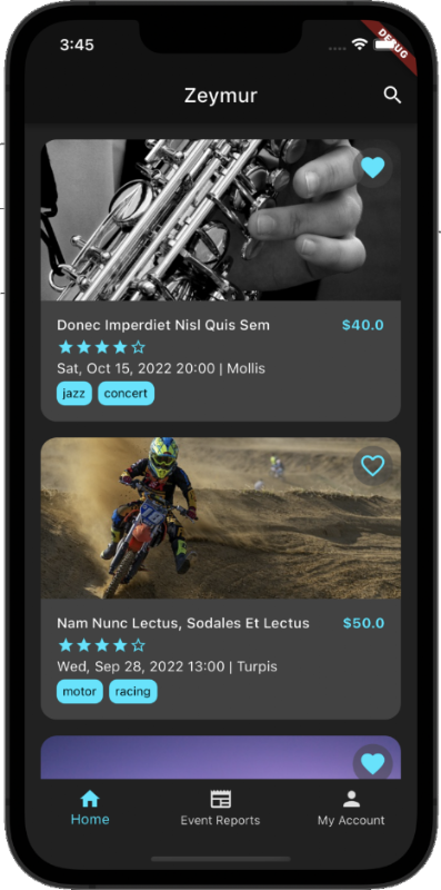 This product is a user interface template developed using Flutter. If you want to develop an event application, you can save time by using the codes of this item in the presentation layer. So you can focus on business layer and backend service. You’ll not only have UI code, but also helper classes, and custom widgets. File and class names are nicely named and organized so that you can easily find what you are looking for in the source code.