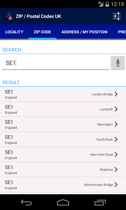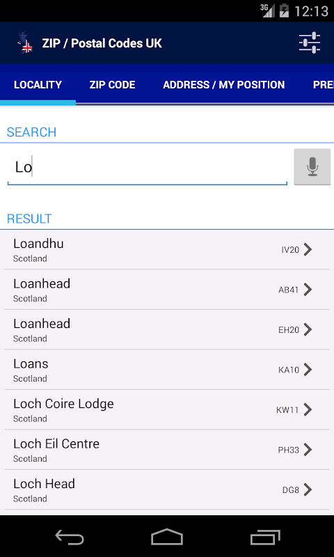 Application to look up postal code (ZIP) or localities in the United Kingdom