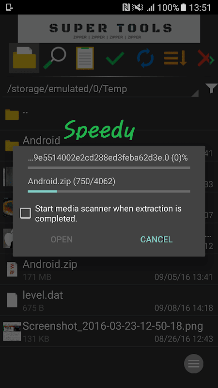 It can decompress zip type file