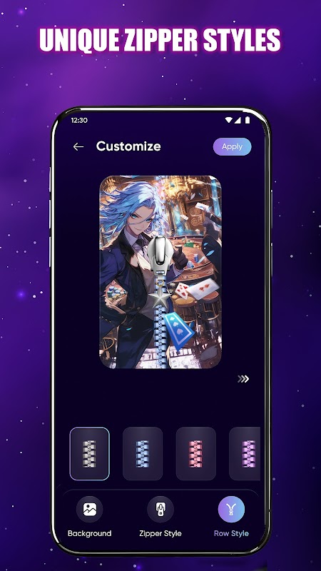 Customize your zipper lock screen with fun zipper styles, wallpapers and effects