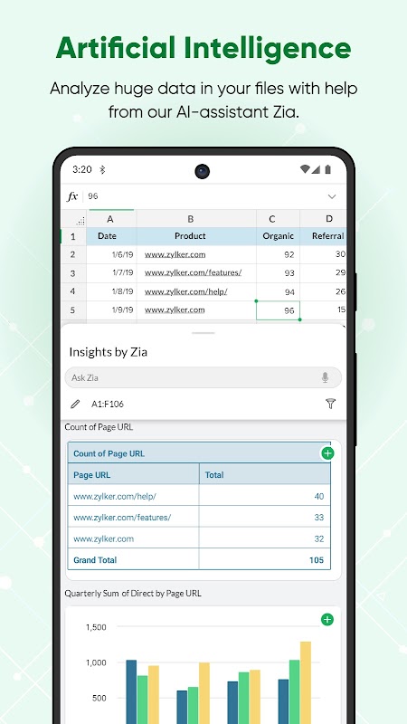 11. Let Zia, our in-house artificial intelligence, do the heavy lifting—get smart data analysis suggestions, automatically generate charts and pivot tables, and even ask questions using voice commands.