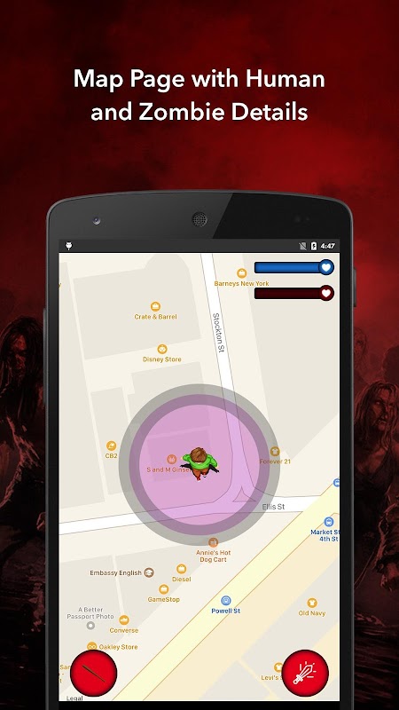 Zombie Apocalypse GPS transforms your hometown into a doomsday arena before your eyes. Using GPS Location Technology, all players are connected in this colossal game of annihilation. Choose to play as a Zombie or Human.
