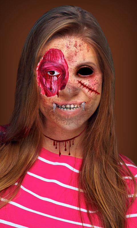 Have fun time by giving a Zombie face that will transform your captured photo into biting, groaning, brain-eating, scratches, bloodshed, ferocious Zombie.
