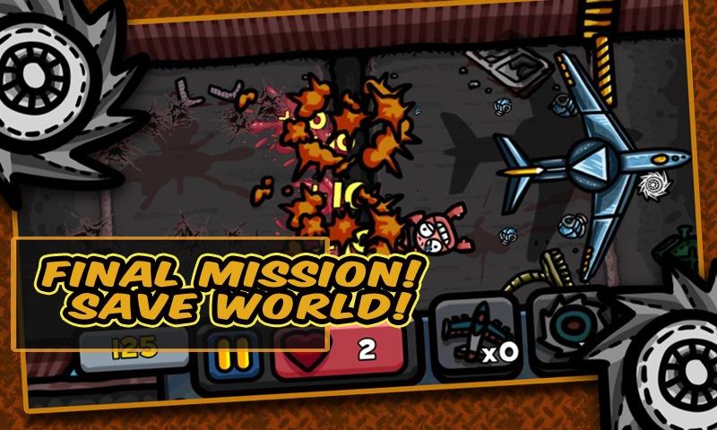 Collect awesome powerups and tools. Hang in there, our air support is coming. Get combos. Get a high score. Make zombies go splat!
