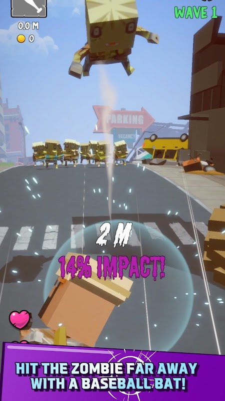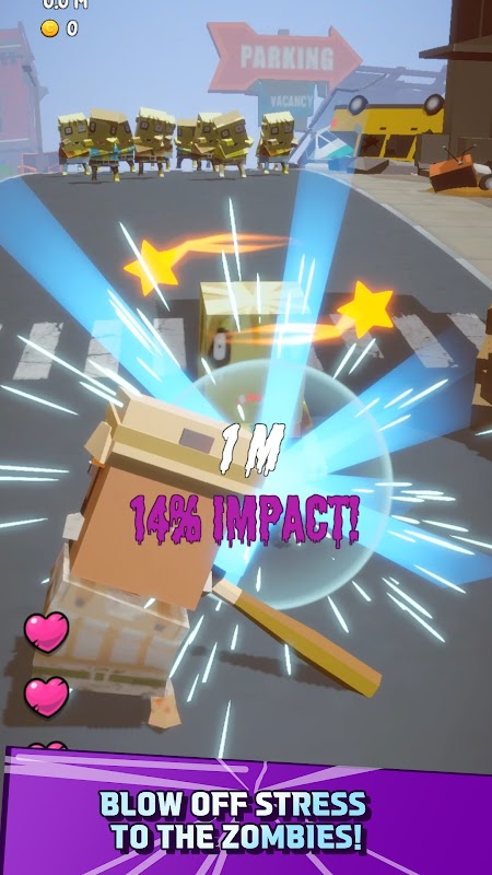 ZomRun is easy to play with simple controls. Time your swings with the target's timing before the zombies rush in to attack you. Use the last fever gauge to send zombies flying and relieve stress! Survive the onslaught of countless zombies!