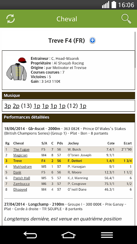 - Horse file of each runner gathering all the history of detailed performances race by race