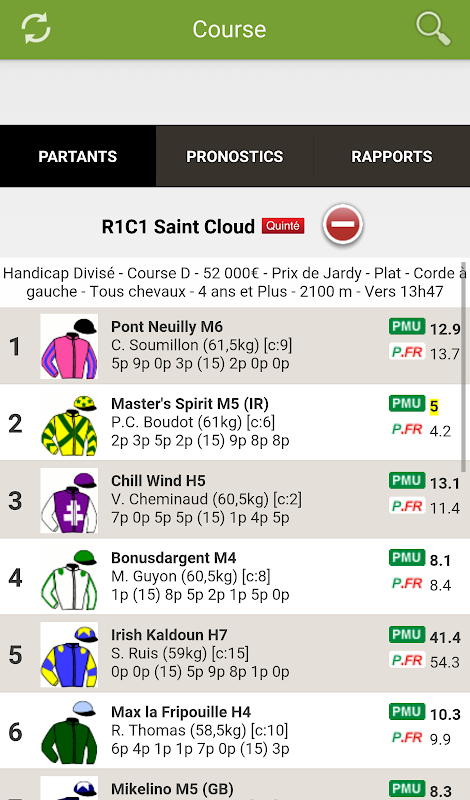 Download the Zone Turf application for free to play your game: consult the PMU race program, forecasts, arrivals, reports, and PMU results in real time for free.