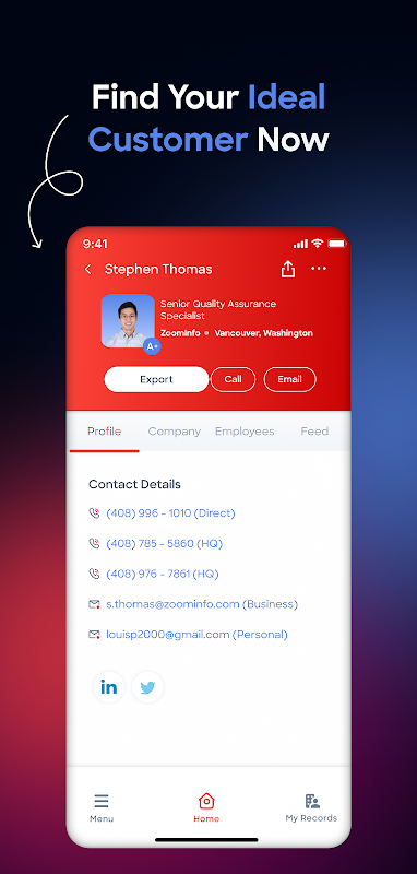 Connect with prospects, leads and customers on the go with the ZoomInfo App.