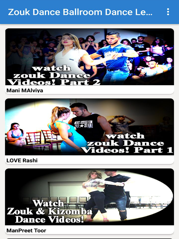 How to dance the most popular ballroom dances And Zouk Dance. Learn different dances with this application, such as tango, merengue, rock and roll, waltz, swing and chachacha. If you always wanted to learn how to dance ballroom dancing, you've come to the right place. Follow our dance lessons and learn the moves more attractive with videos descritivos and instructions very simple.