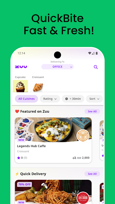 With just a few taps, you can explore a wide range of restaurants, browse diverse menus, and place your order seamlessly. No more waiting in lines or dealing with traffic—Zuu ensures hot, fresh, and delicious meals arrive at your location in no time!