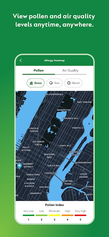 - Interactive pollen & air quality maps to see the pollen and air quality levels along with the top allergens in your area.